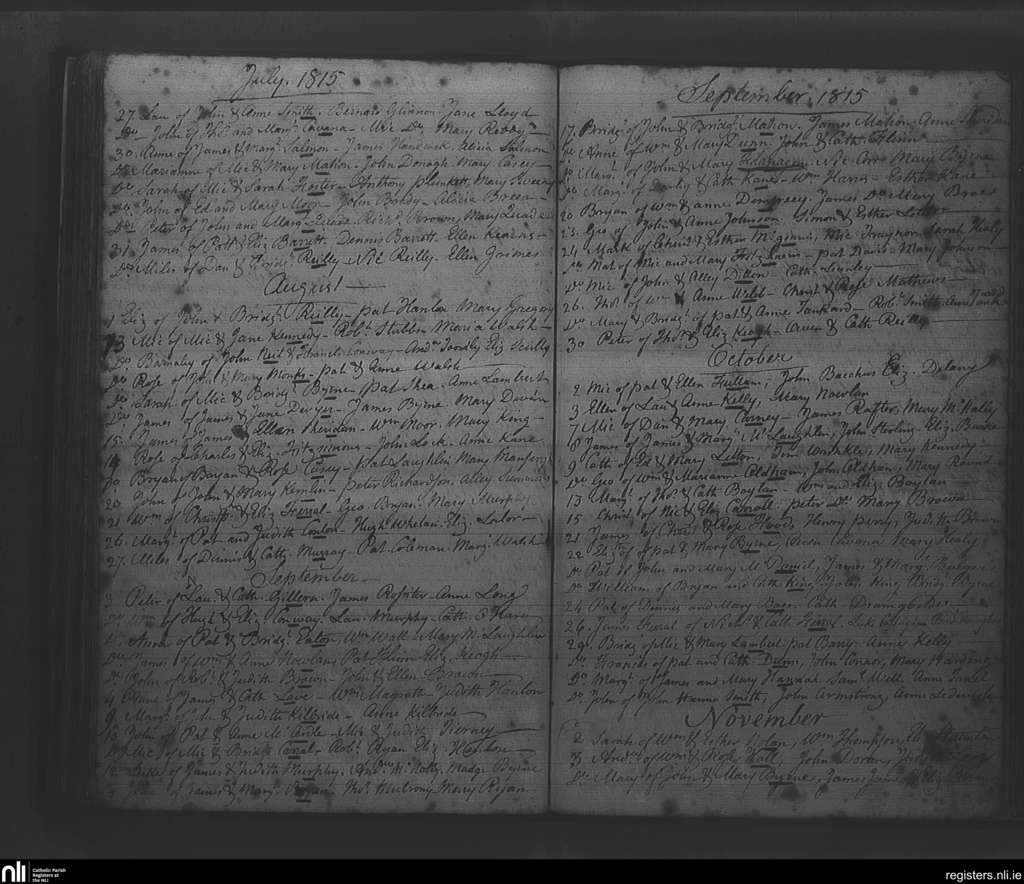 Rathfarnham; County of Dublin; Archdiocese of Dublin. Baptisms, July 1815 to Nov. 1815