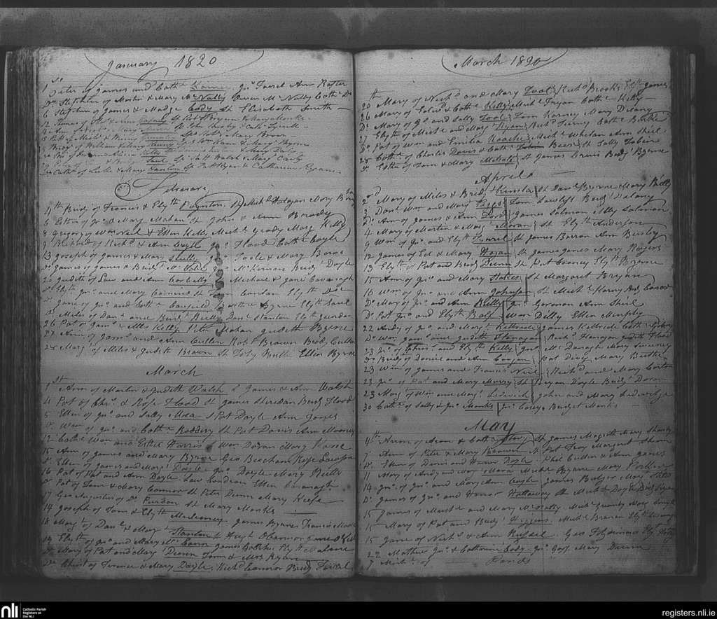 Rathfarnham; County of Dublin; Archdiocese of Dublin. Baptisms, Jan. 1820 to May 1820
