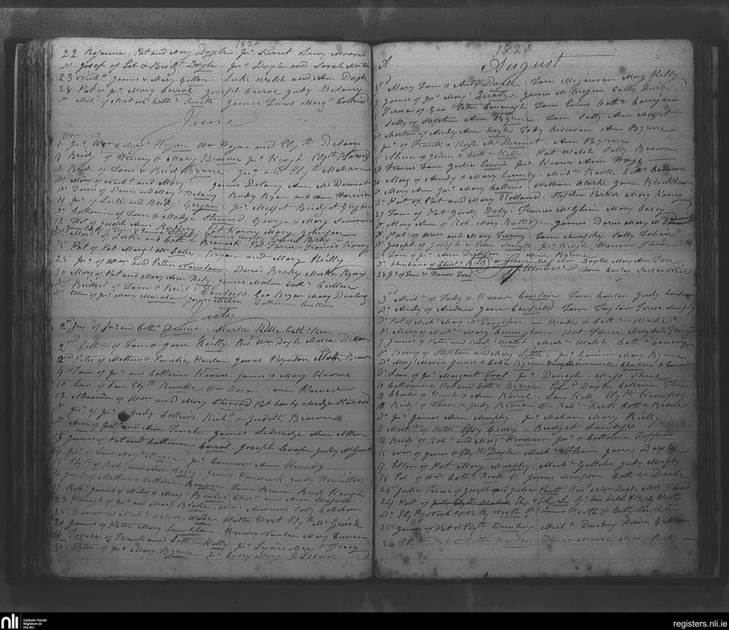 Rathfarnham; County of Dublin; Archdiocese of Dublin. Baptisms, June 1820 to Sep. 1820