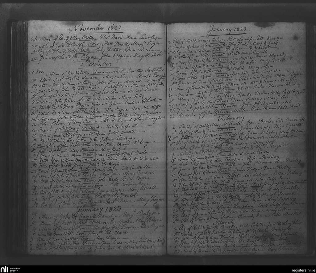 Rathfarnham; County of Dublin; Archdiocese of Dublin. Baptisms, Nov. 1822 to Mar. 1823