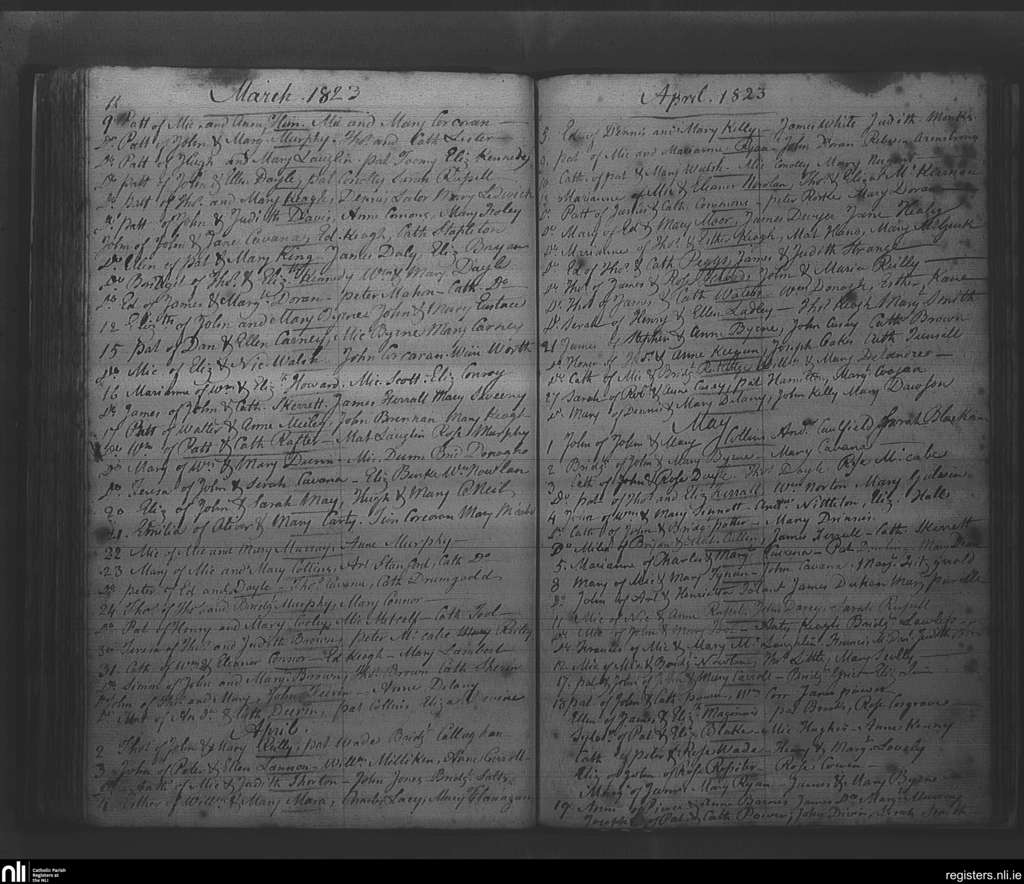 Rathfarnham; County of Dublin; Archdiocese of Dublin. Baptisms, Mar. 1823 to May 1823