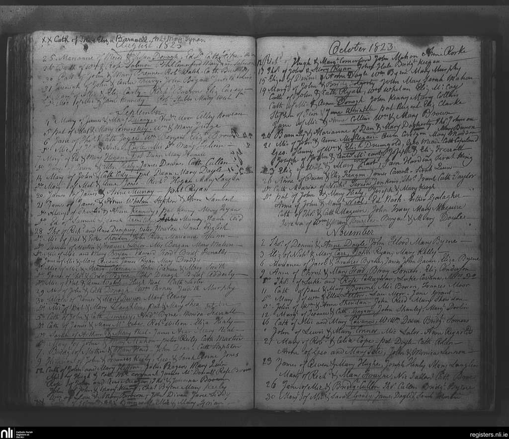 Rathfarnham; County of Dublin; Archdiocese of Dublin. Baptisms, Aug. 1823 to Nov. 1823