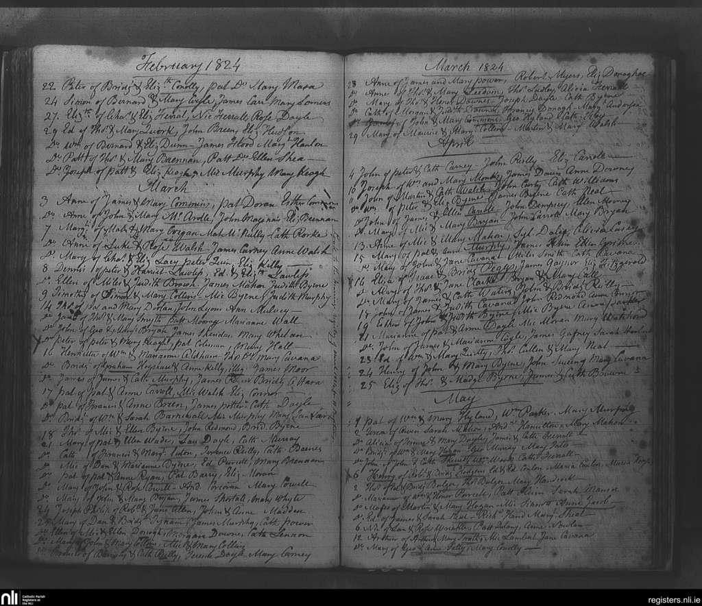 Rathfarnham; County of Dublin; Archdiocese of Dublin. Baptisms, Feb. 1824 to May 1824