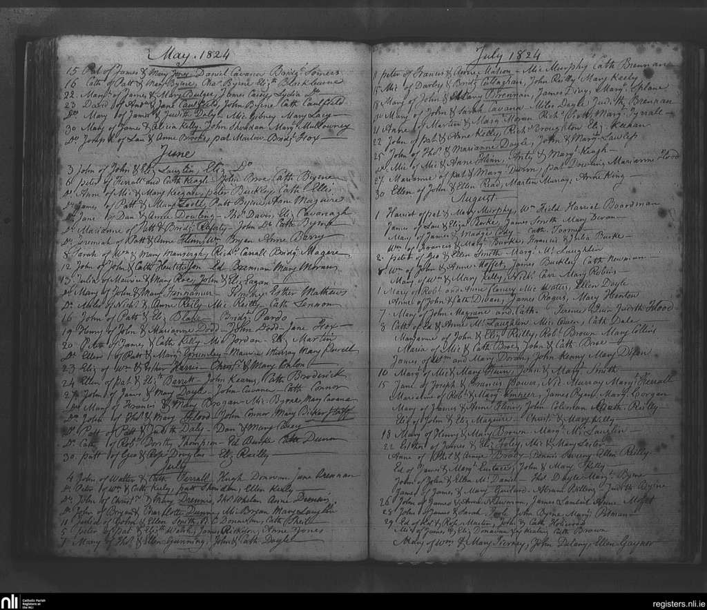 Rathfarnham; County of Dublin; Archdiocese of Dublin. Baptisms, May 1824 to Aug. 1824