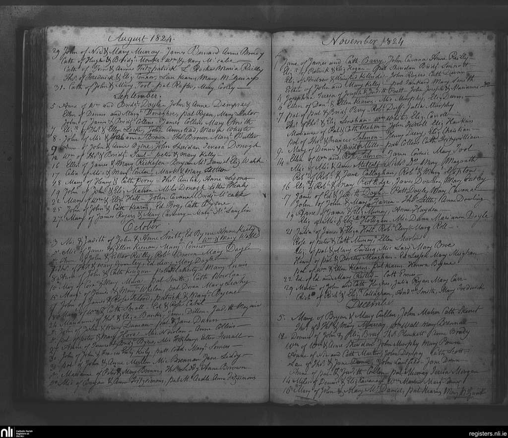 Rathfarnham; County of Dublin; Archdiocese of Dublin. Baptisms, Aug. 1824 to Dec. 1824