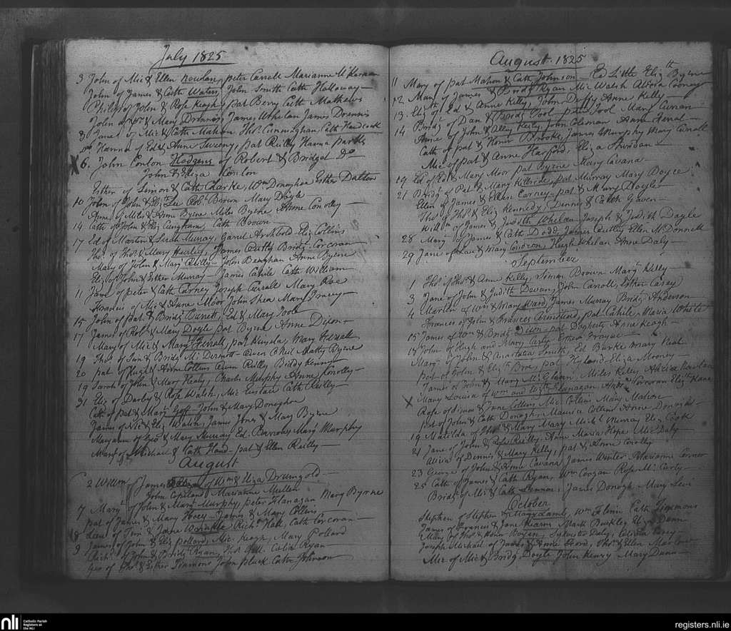 Rathfarnham; County of Dublin; Archdiocese of Dublin. Baptisms, July 1825 to Oct. 1825