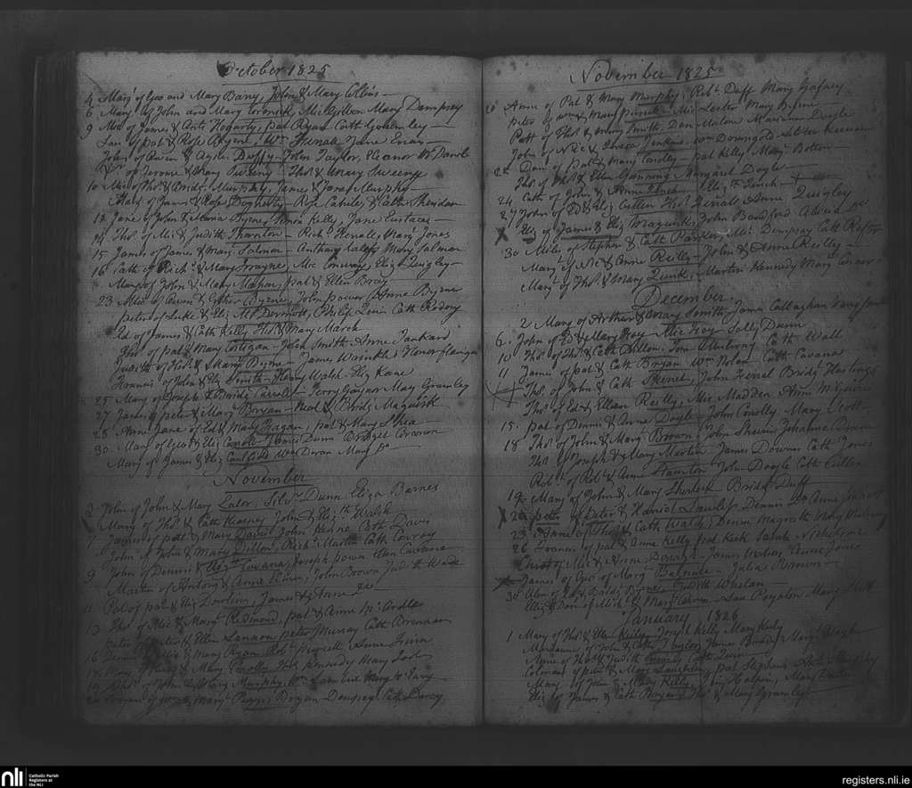 Rathfarnham; County of Dublin; Archdiocese of Dublin. Baptisms, Oct. 1825 to Jan. 1826