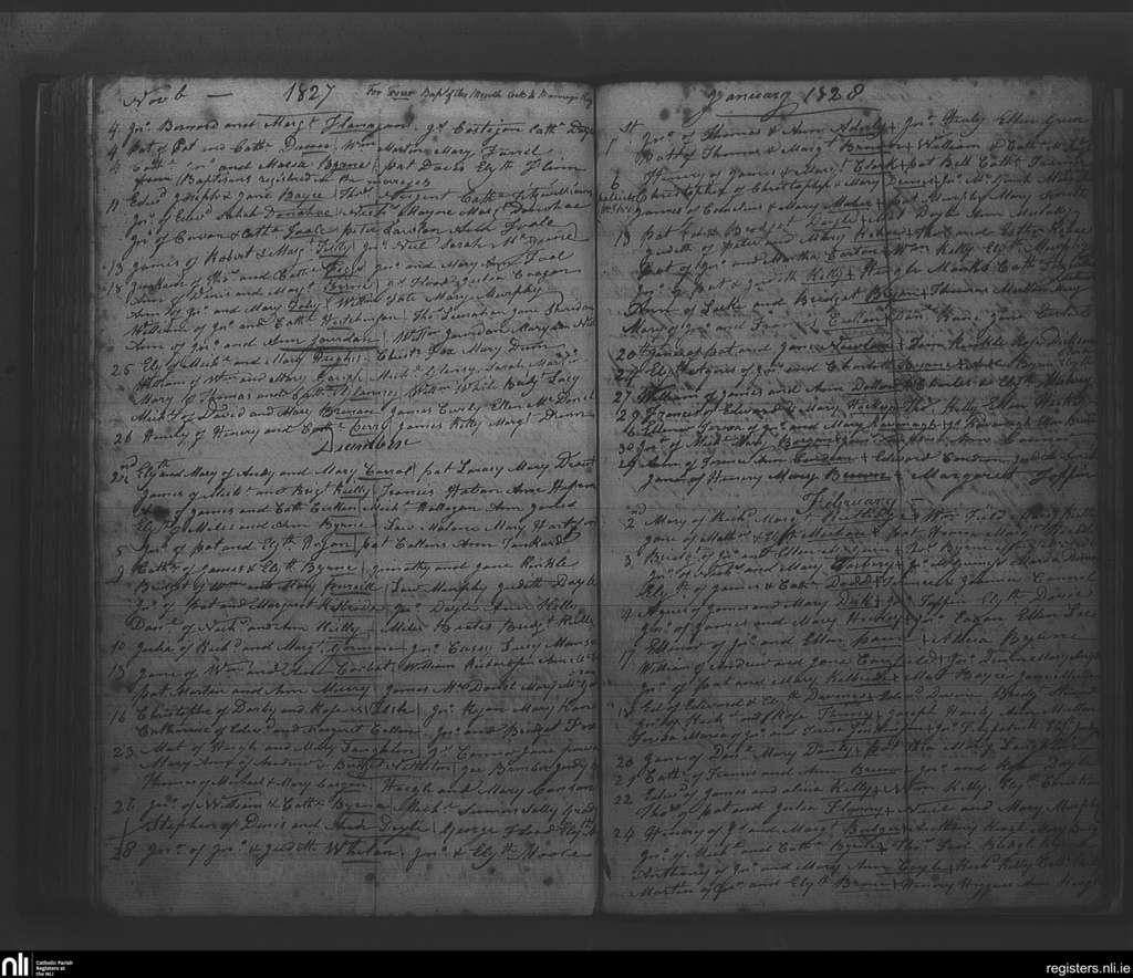 Rathfarnham; County of Dublin; Archdiocese of Dublin. Baptisms, Nov. 1827 to Feb. 1828