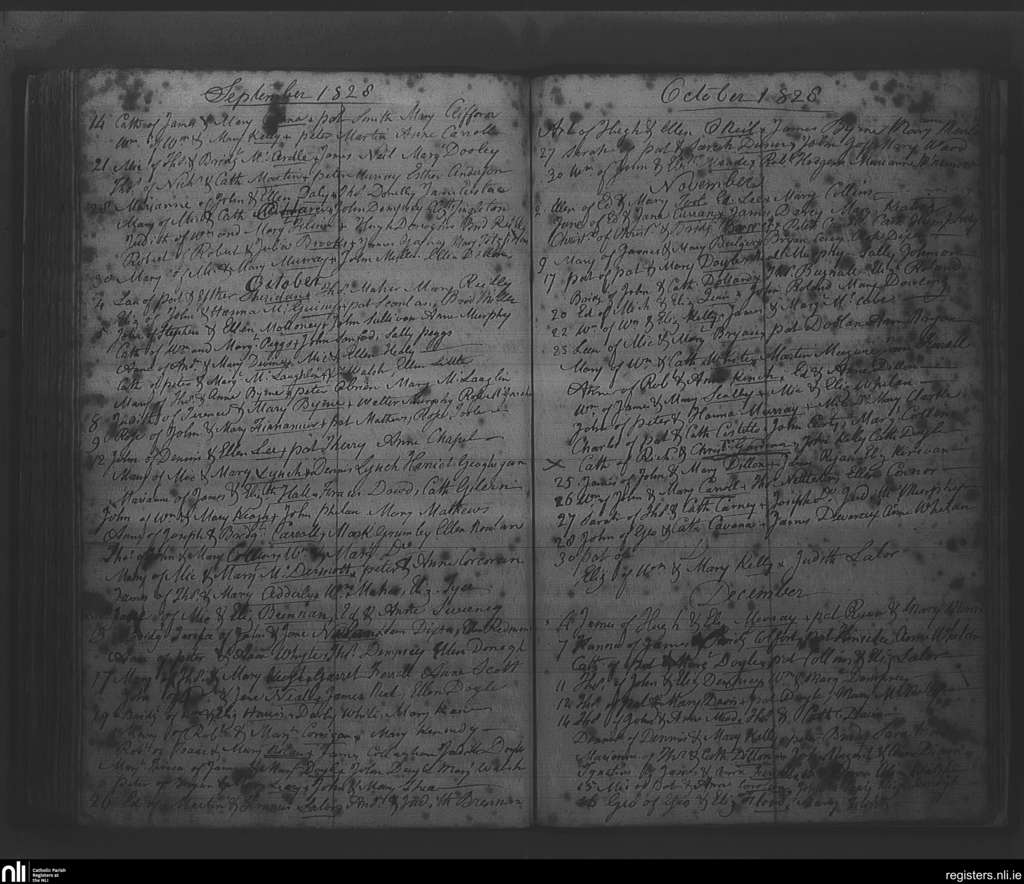 Rathfarnham; County of Dublin; Archdiocese of Dublin. Baptisms, Sep. 1828 to Dec. 1828