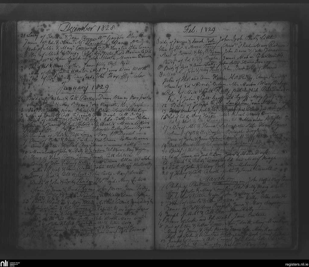 Rathfarnham; County of Dublin; Archdiocese of Dublin. Baptisms, Dec. 1828 to Mar. 1829
