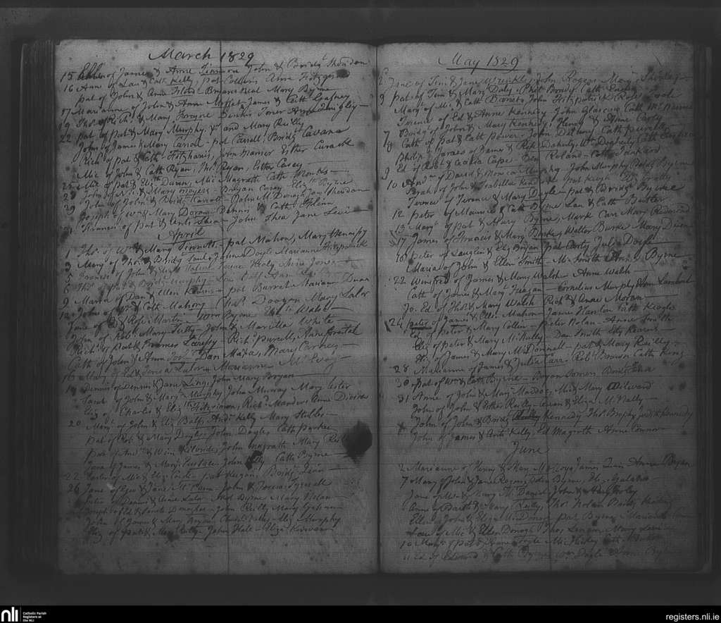 Rathfarnham; County of Dublin; Archdiocese of Dublin. Baptisms, Mar. 1829 to June 1829