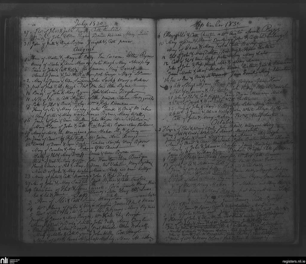 Rathfarnham; County of Dublin; Archdiocese of Dublin. Baptisms, July 1830 to Nov. 1830