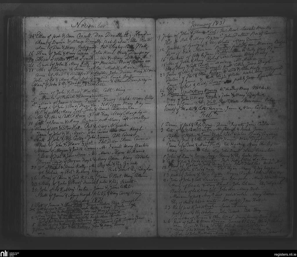 Rathfarnham; County of Dublin; Archdiocese of Dublin. Baptisms, Nov. 1830 to Feb. 1831