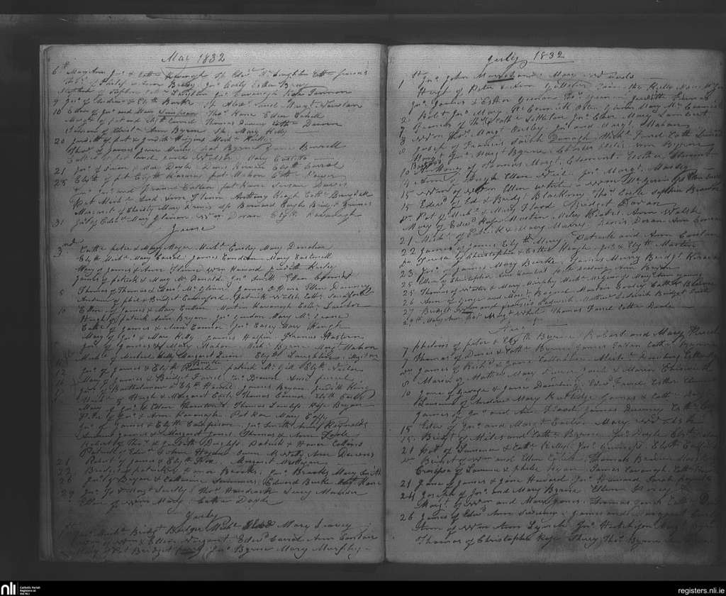 Rathfarnham; County of Dublin; Archdiocese of Dublin. Baptisms, May 1832 to Aug. 1832