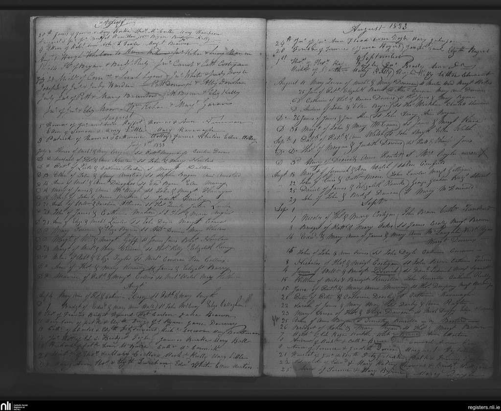 Rathfarnham; County of Dublin; Archdiocese of Dublin. Baptisms, July 1833 to Sep. 1833
