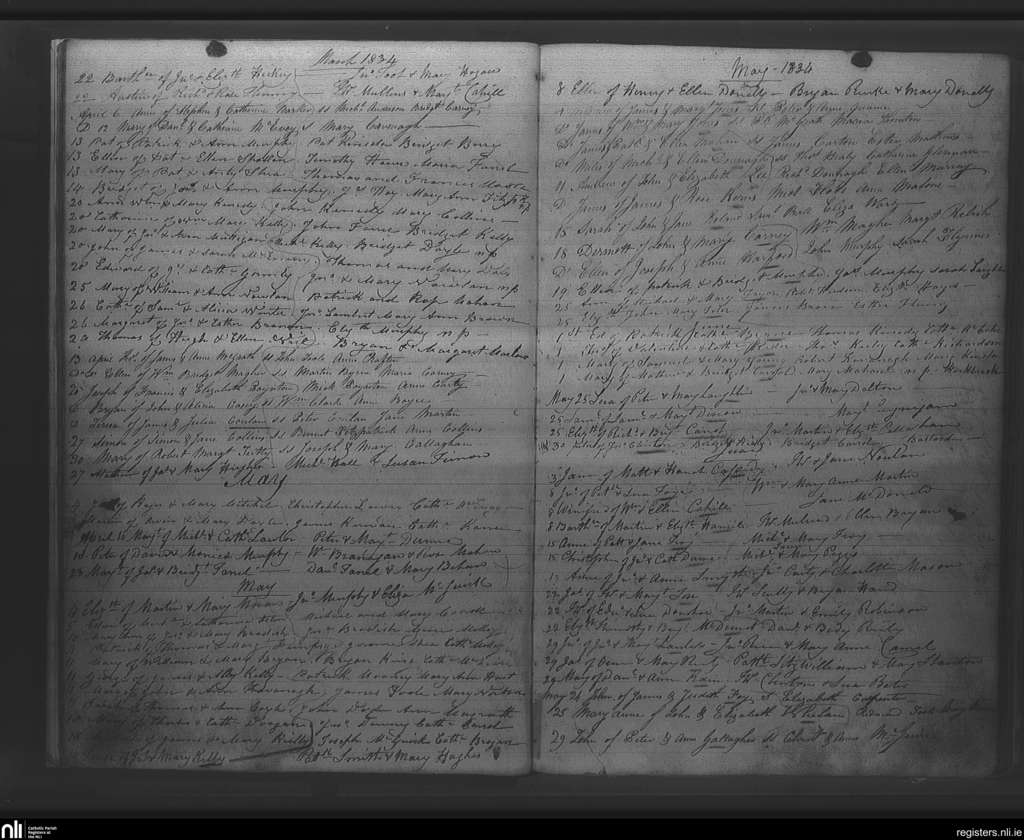 Rathfarnham; County of Dublin; Archdiocese of Dublin. Baptisms, Mar. 1834 to June 1834