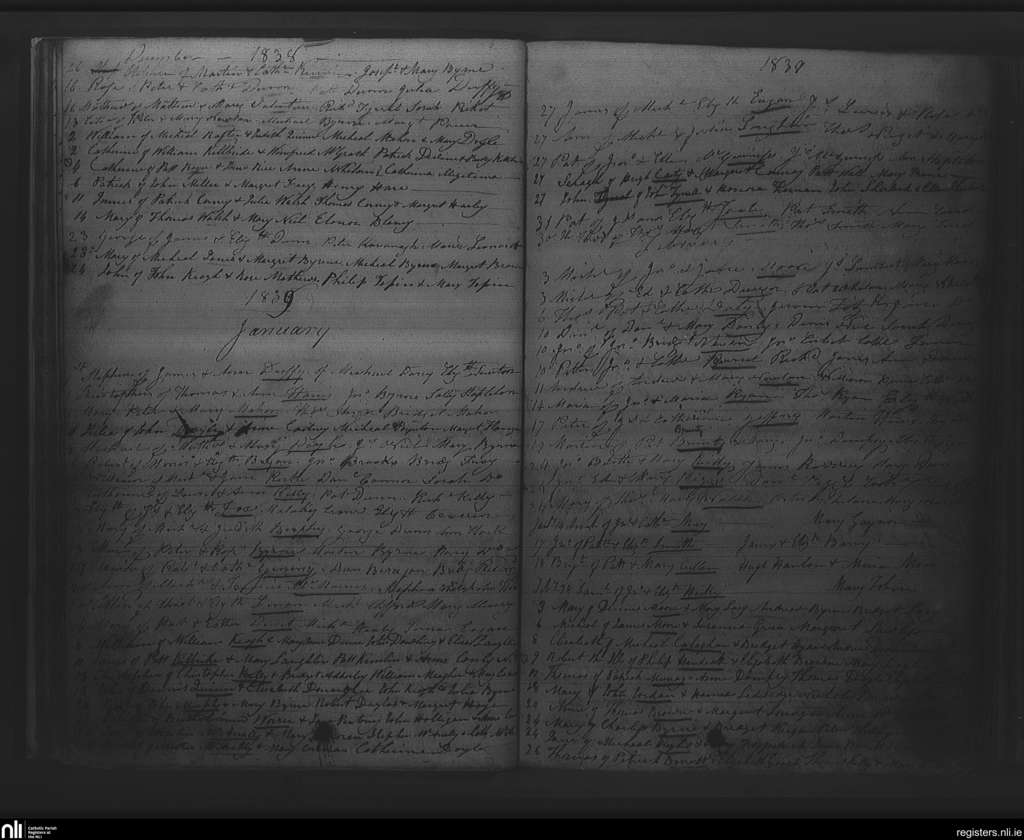 Rathfarnham; County of Dublin; Archdiocese of Dublin. Baptisms, Dec. 1838 to Feb. 1839