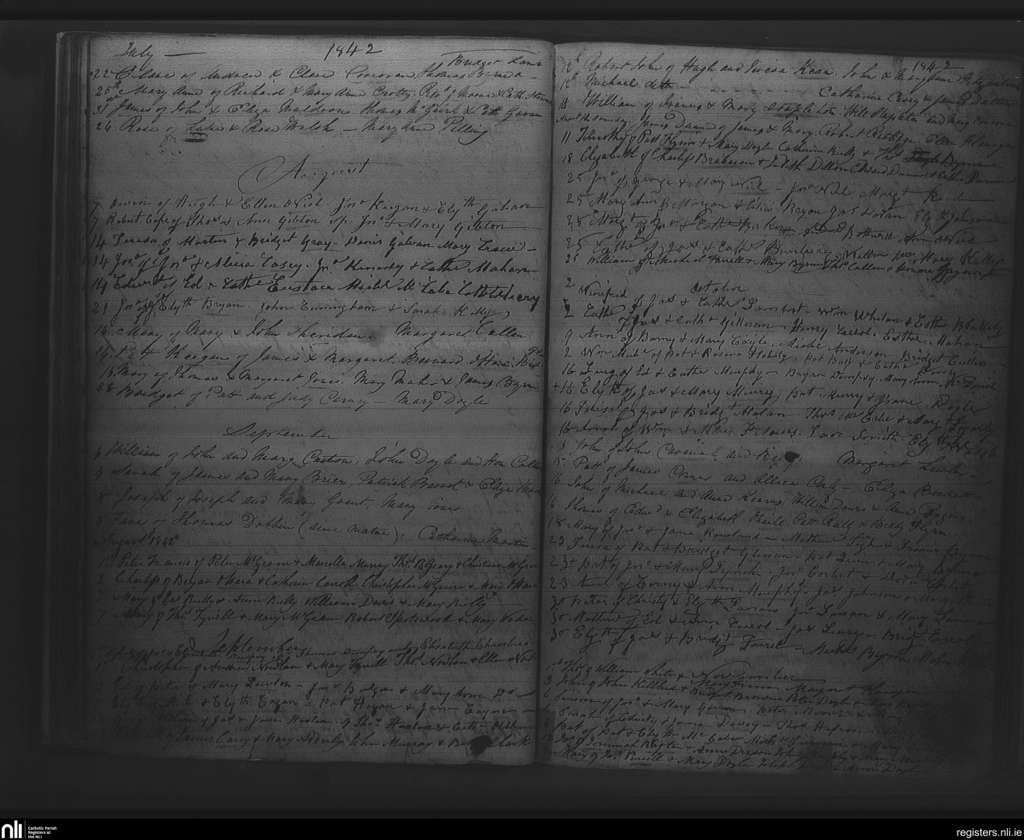 Rathfarnham; County of Dublin; Archdiocese of Dublin. Baptisms, July 1842 to Nov. 1842