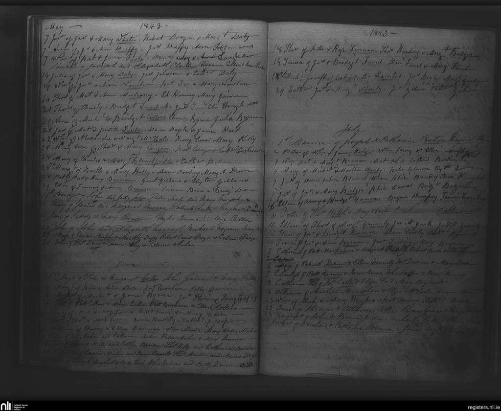 Rathfarnham; County of Dublin; Archdiocese of Dublin. Baptisms, May 1843 to July 1843