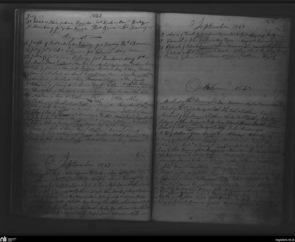 Rathfarnham; County of Dublin; Archdiocese of Dublin. Baptisms, July 1843 to Oct. 1843