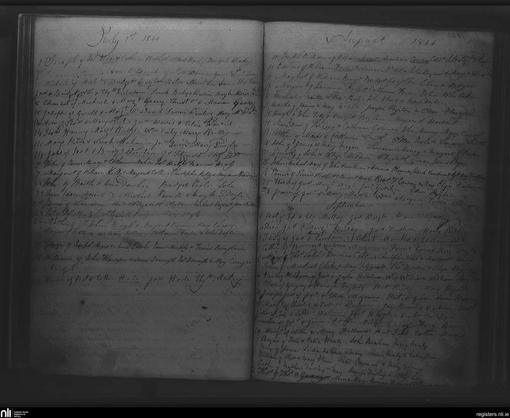 Rathfarnham; County of Dublin; Archdiocese of Dublin. Baptisms, July 1844 to Sep. 1844