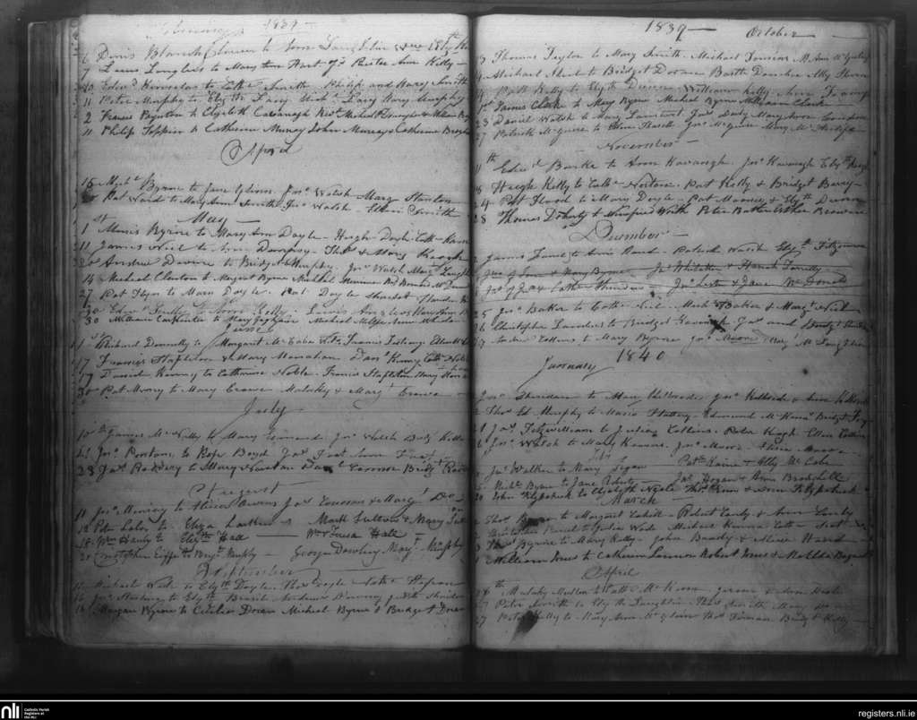 Rathfarnham; County of Dublin; Archdiocese of Dublin. Marriages, Baptisms, Feb. 1839 to Apr. 1840