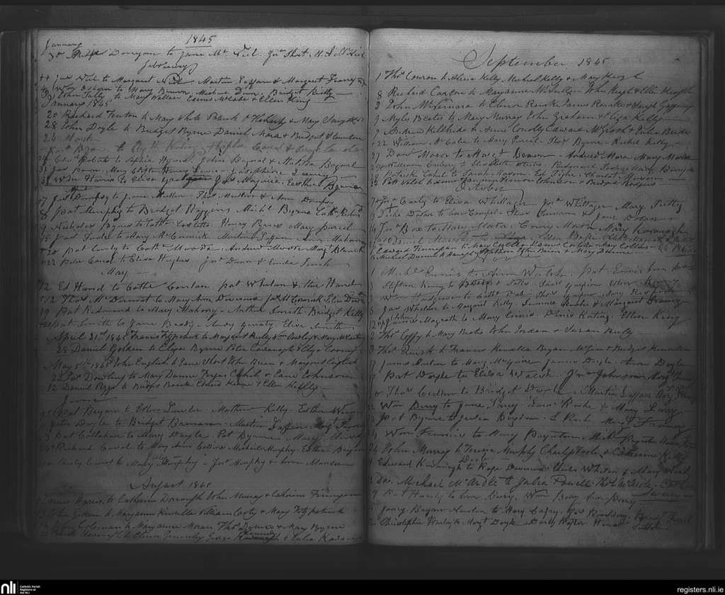 Rathfarnham; County of Dublin; Archdiocese of Dublin. Marriages, Jan. 1845 to Jan. 1846