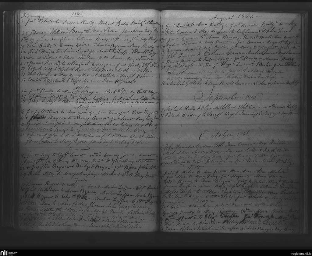 Rathfarnham; County of Dublin; Archdiocese of Dublin. Marriages, Jan. 1846 to Jan. 1847