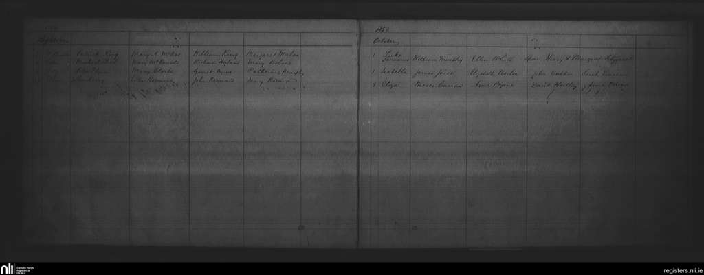 Rathfarnham; County of Dublin; Archdiocese of Dublin. Baptisms, Sep. 1854 to Oct. 1854