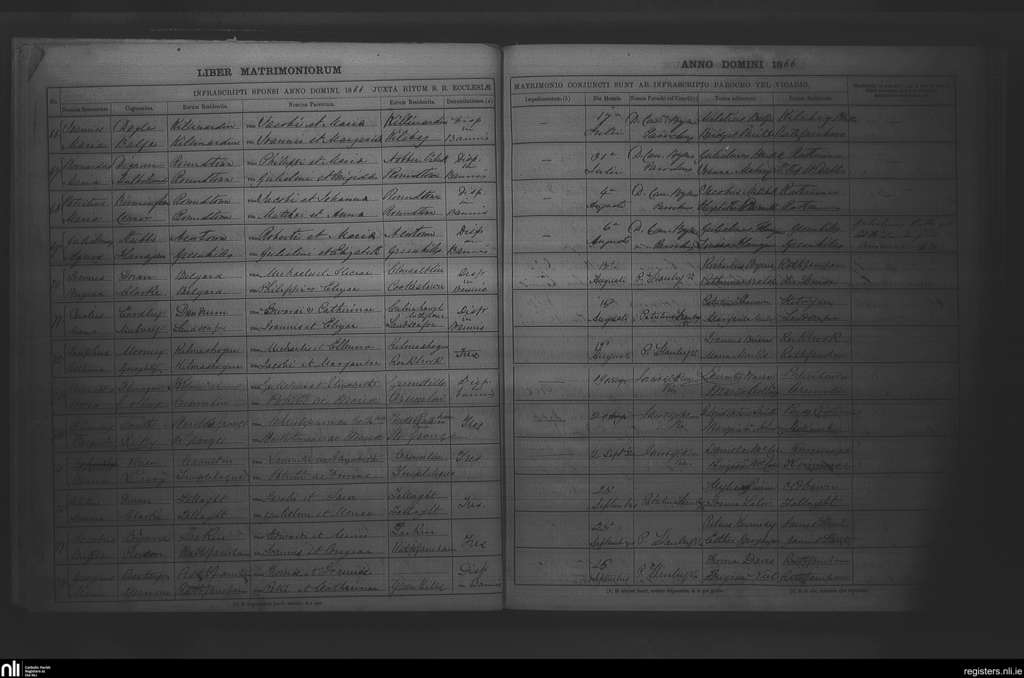 Rathfarnham; County of Dublin; Archdiocese of Dublin. Marriages, July 1866 to Sep. 1866