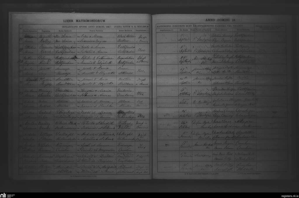 Rathfarnham; County of Dublin; Archdiocese of Dublin. Marriages, Sep. 1867 to Dec. 1867
