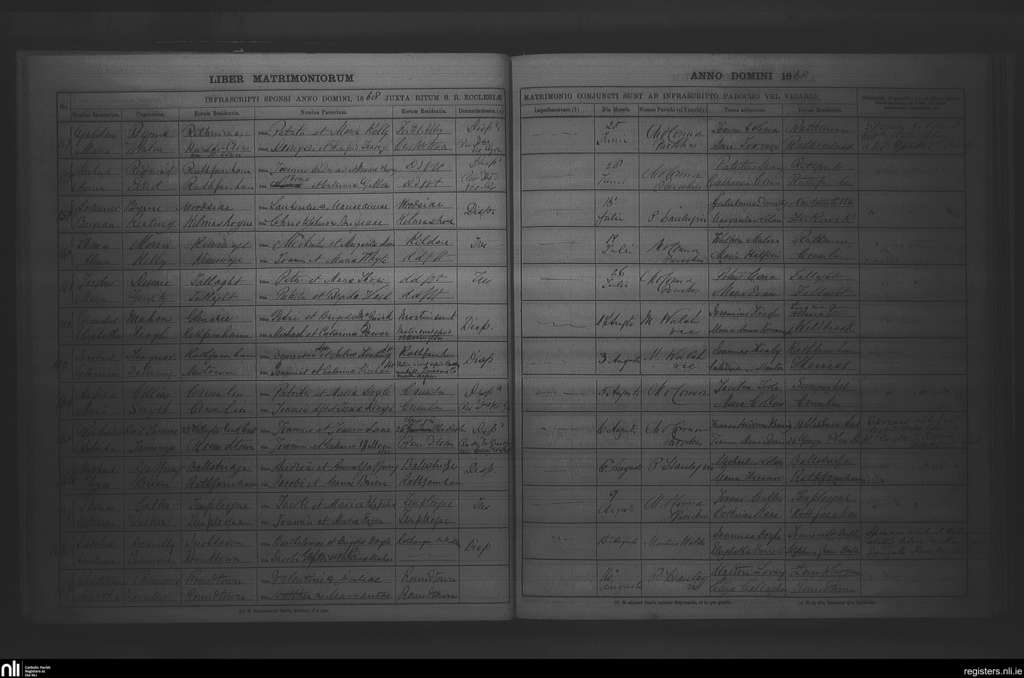 Rathfarnham; County of Dublin; Archdiocese of Dublin. Marriages, June 1868 to Aug. 1868