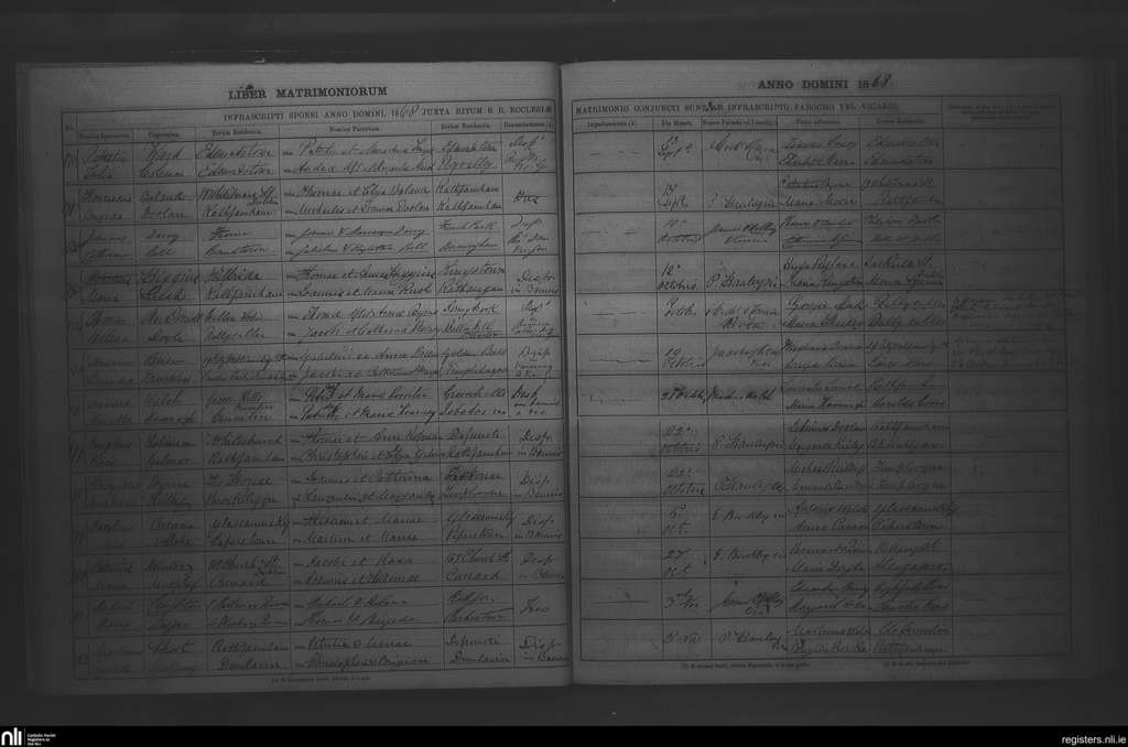 Rathfarnham; County of Dublin; Archdiocese of Dublin. Marriages, Sep. 1868 to Nov. 1868