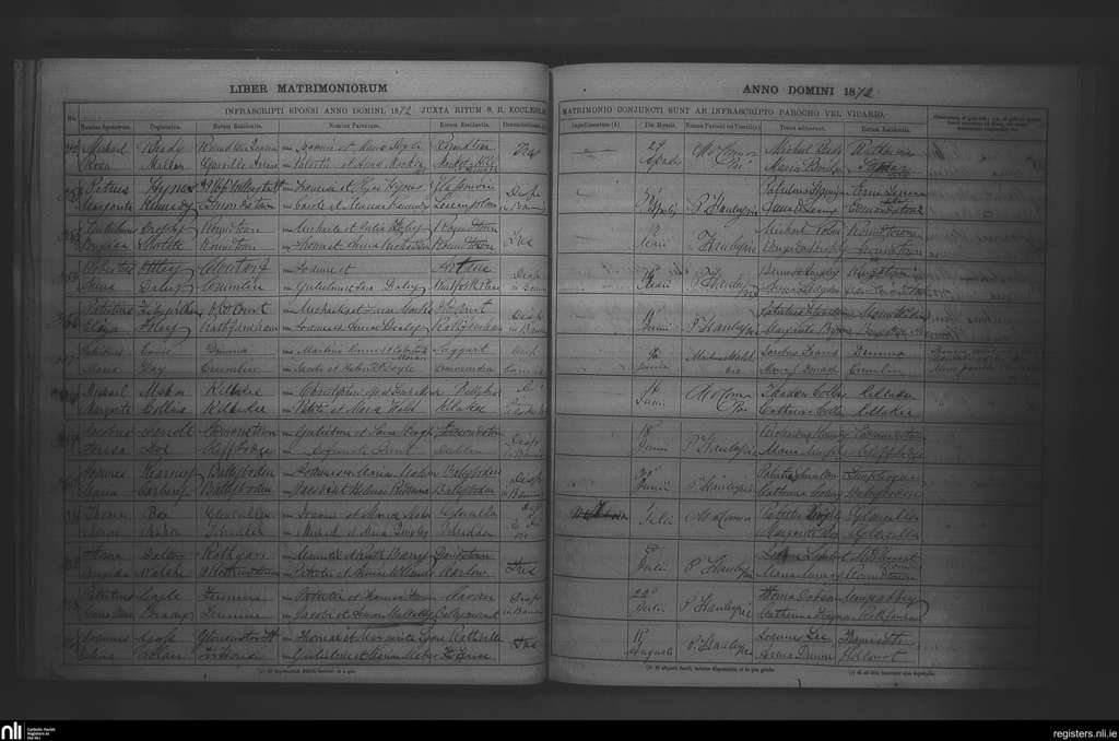Rathfarnham; County of Dublin; Archdiocese of Dublin. Marriages, Apr. 1872 to Aug. 1872