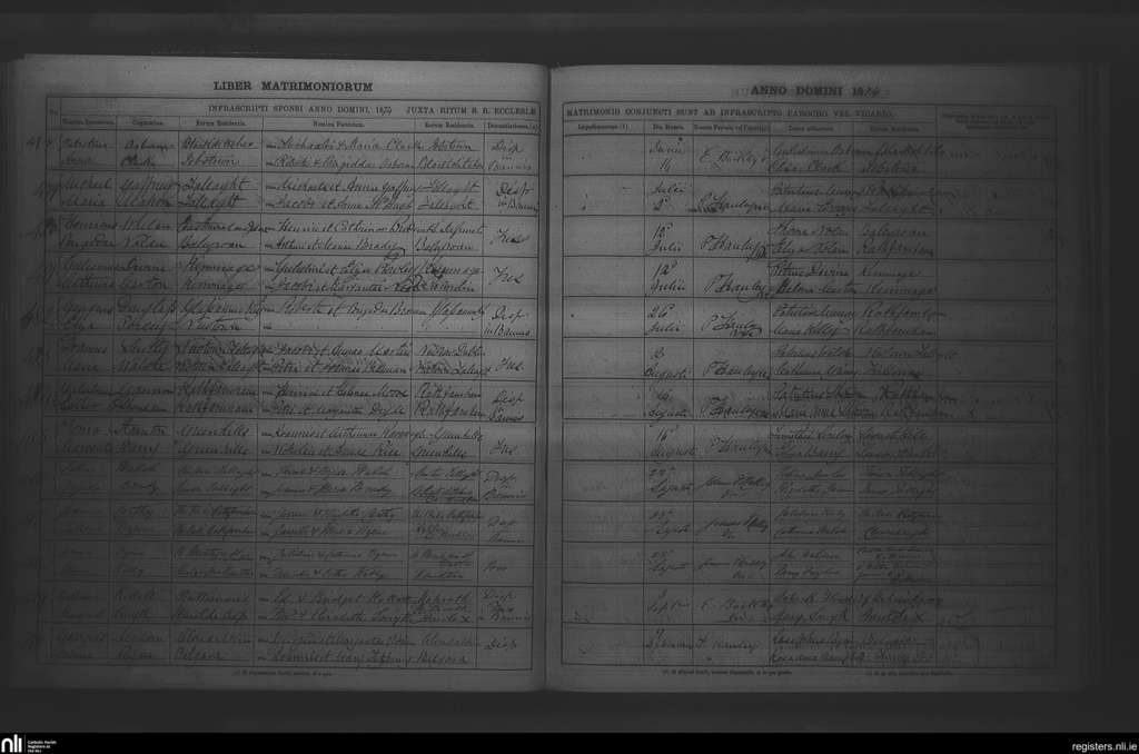 Rathfarnham; County of Dublin; Archdiocese of Dublin. Marriages, June 1874 to Sep. 1874