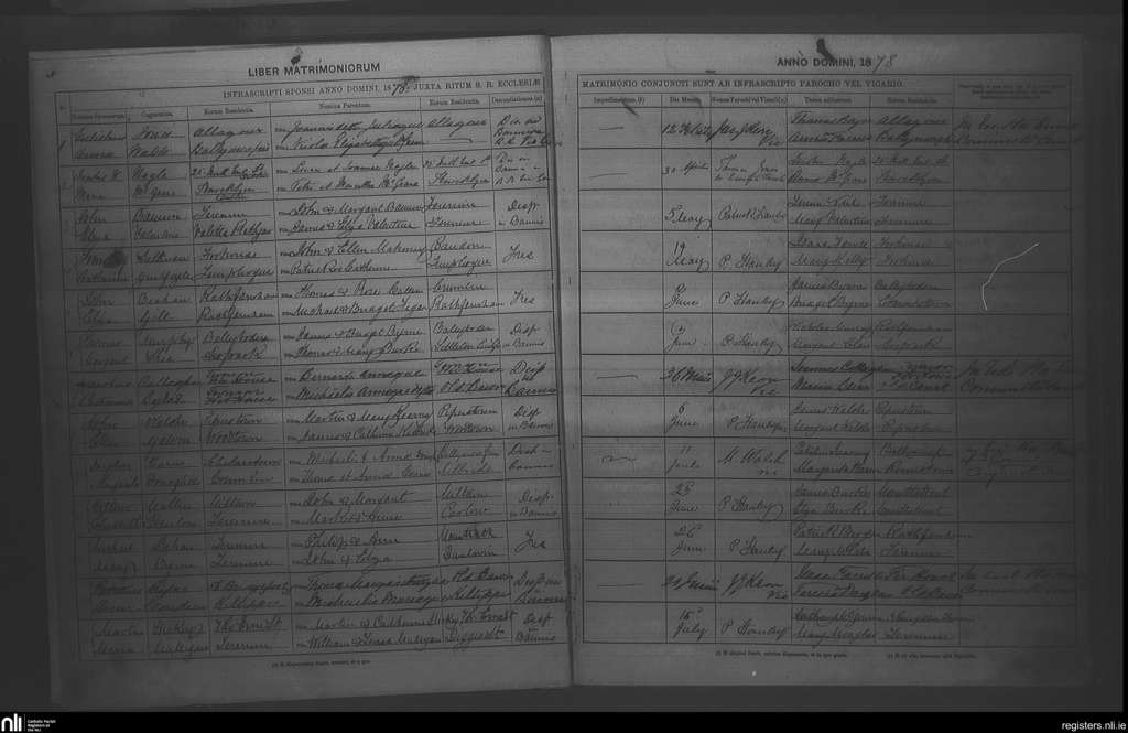 Rathfarnham; County of Dublin; Archdiocese of Dublin. Marriages, Feb. 1878 to July 1878