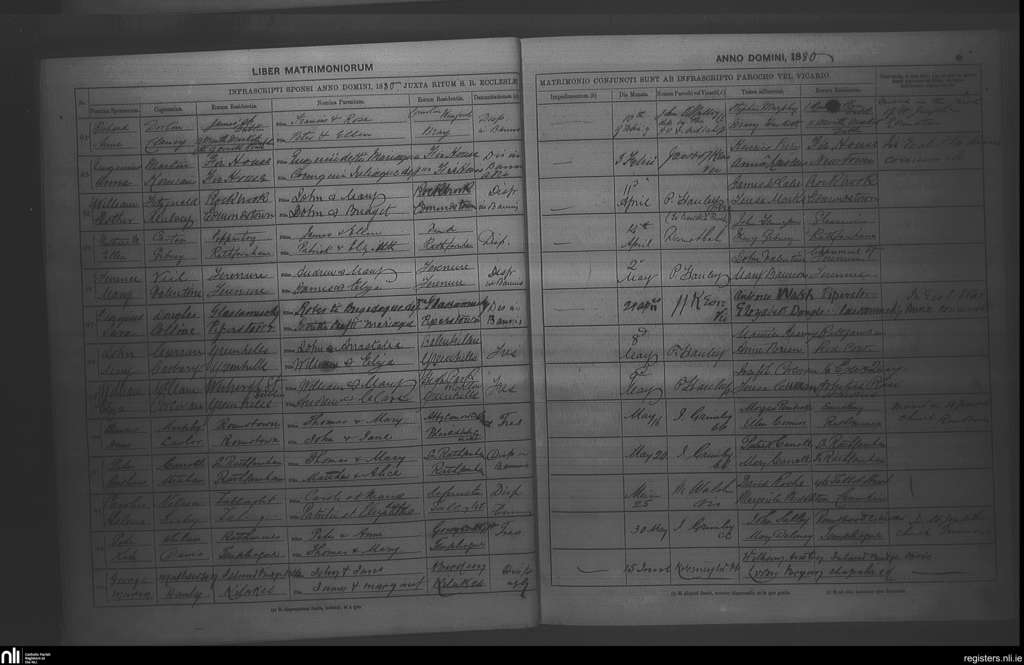 Rathfarnham; County of Dublin; Archdiocese of Dublin. Marriages, Feb. 1880 to June 1880