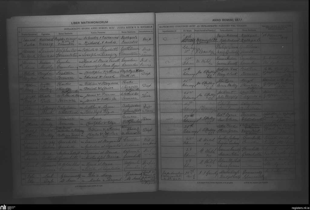 Rathfarnham; County of Dublin; Archdiocese of Dublin. Marriages, Feb. 1881 to Apr. 1881