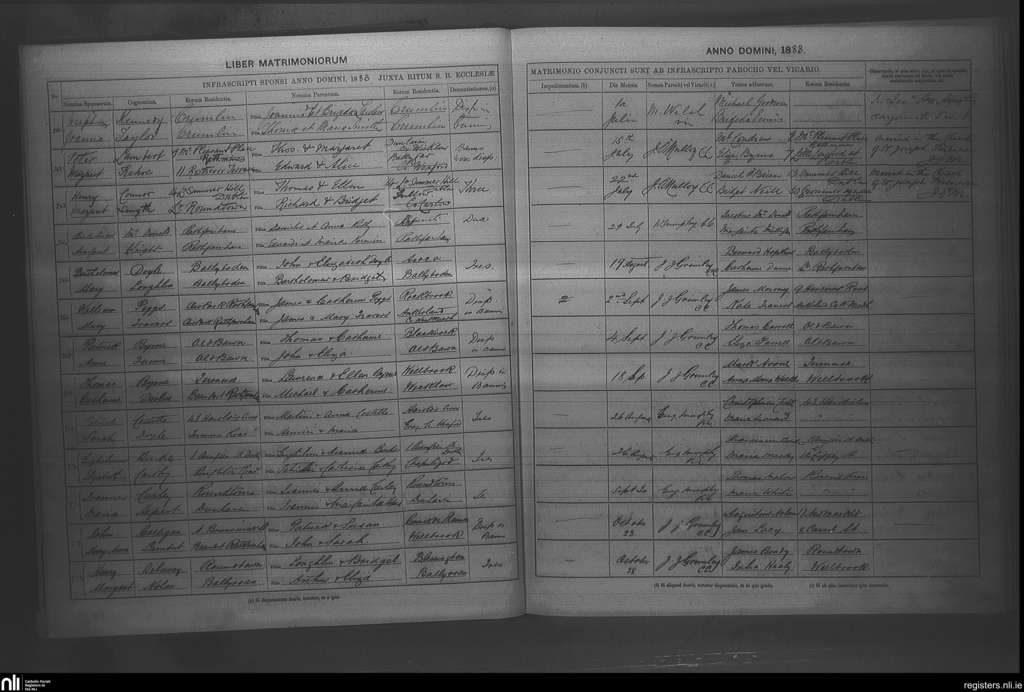 Rathfarnham; County of Dublin; Archdiocese of Dublin. Marriages, July 1883 to Oct. 1883