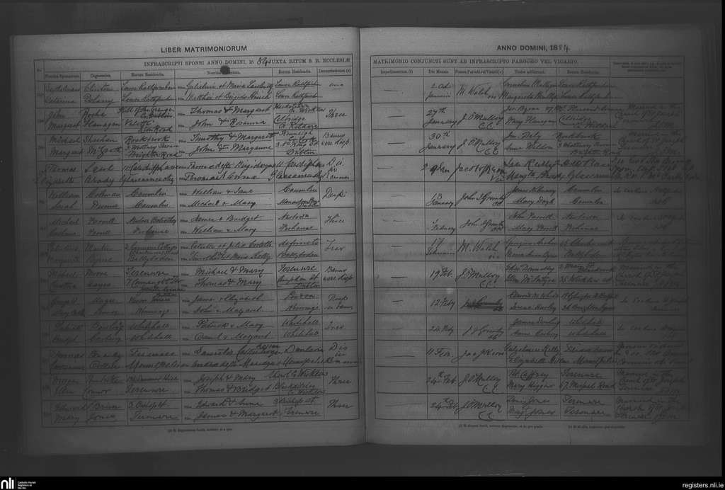Rathfarnham; County of Dublin; Archdiocese of Dublin. Marriages, Jan. 1884 to Feb. 1884