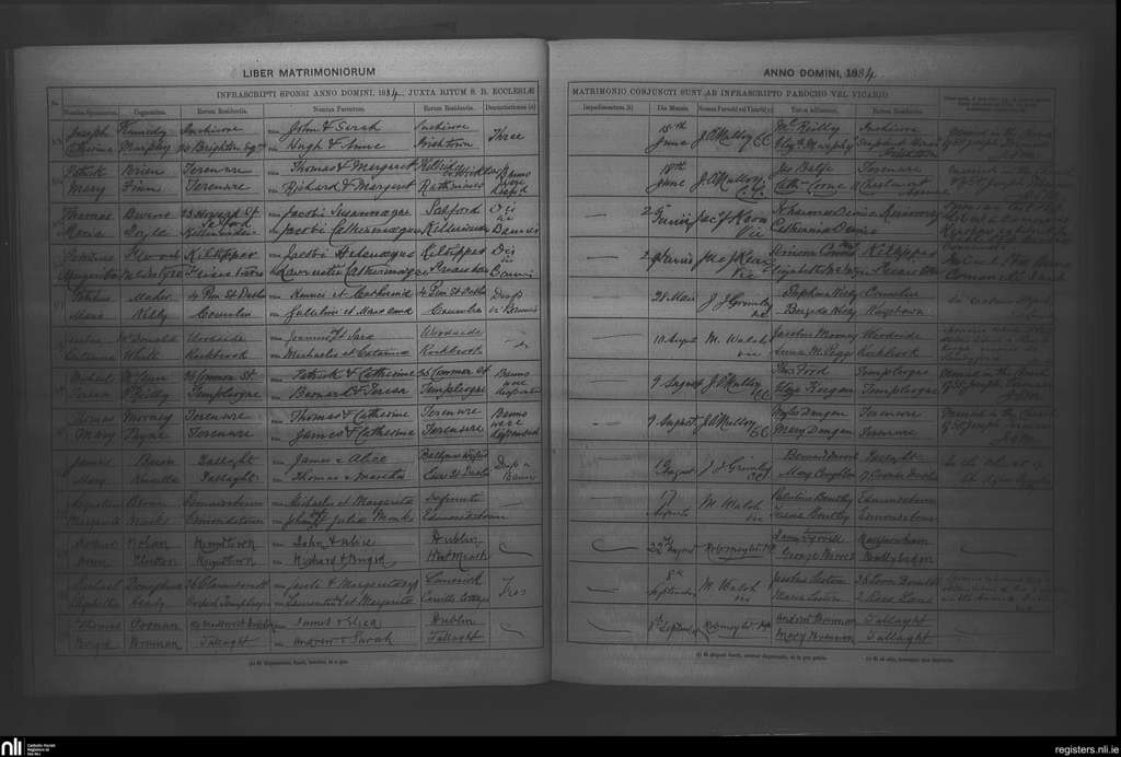 Rathfarnham; County of Dublin; Archdiocese of Dublin. Marriages, May 1884 to Sep. 1884