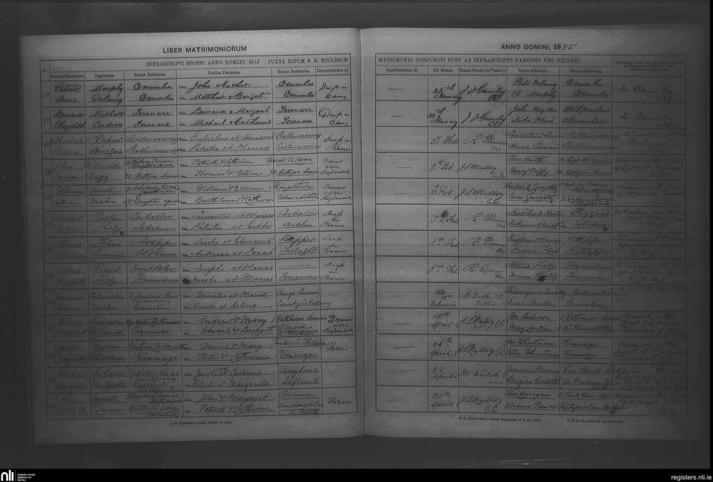 Rathfarnham; County of Dublin; Archdiocese of Dublin. Marriages, Jan. 1885 to Apr. 1885