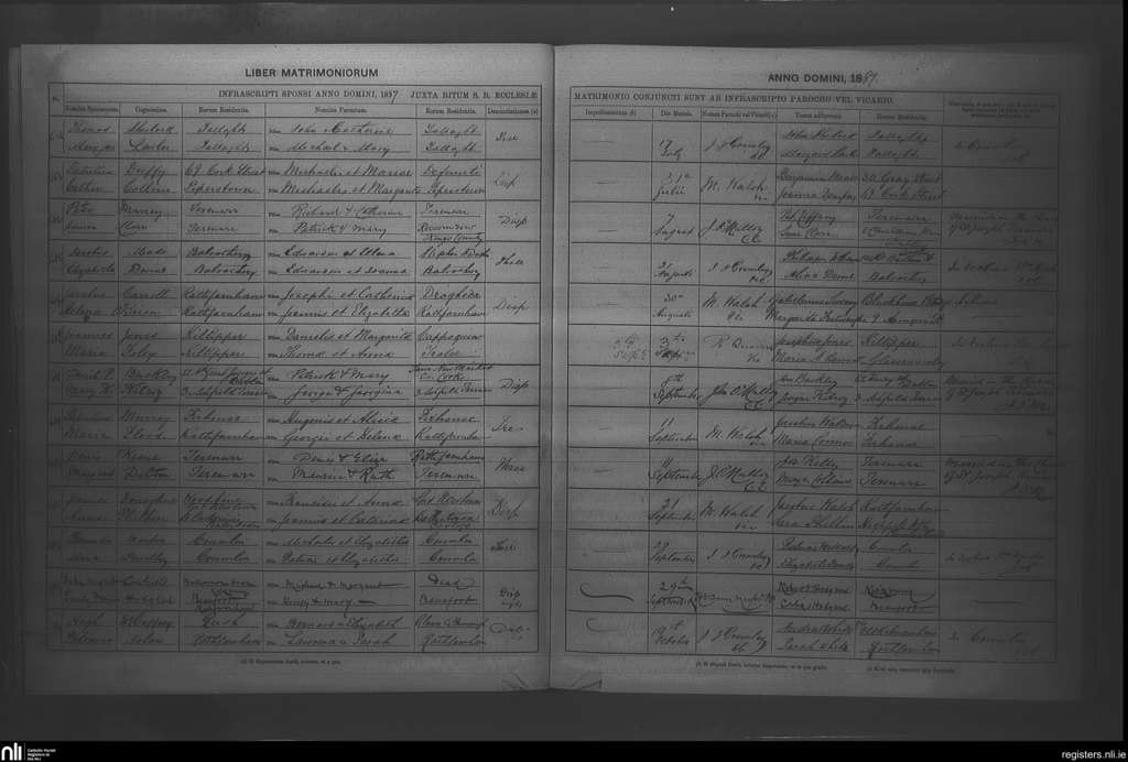 Rathfarnham; County of Dublin; Archdiocese of Dublin. Marriages, July 1887 to Oct. 1887