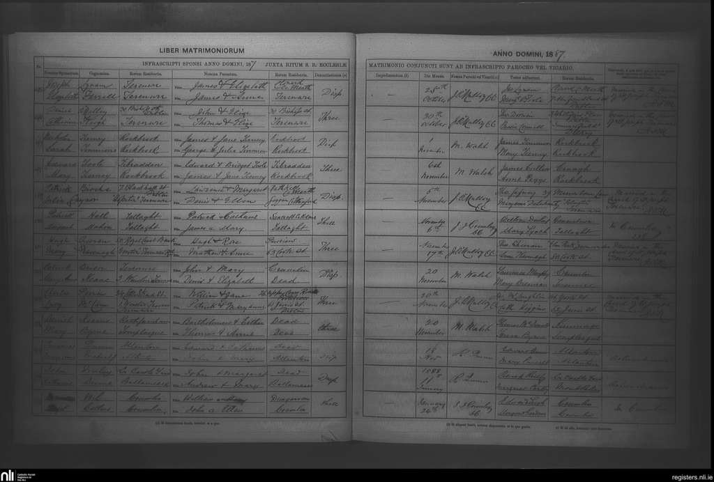 Rathfarnham; County of Dublin; Archdiocese of Dublin. Marriages, Oct. 1887 to Jan. 1888