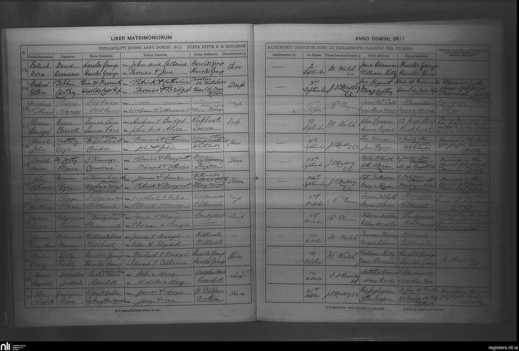 Rathfarnham; County of Dublin; Archdiocese of Dublin. Marriages, Sep. 1888 to Oct. 1888