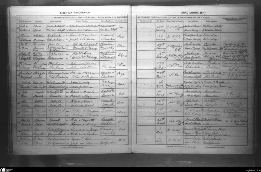 Rathfarnham; County of Dublin; Archdiocese of Dublin. Marriages, Jan. 1889 to May 1889