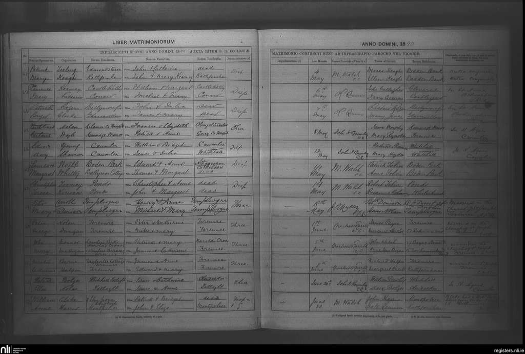 Rathfarnham; County of Dublin; Archdiocese of Dublin. Marriages, May 1890 to June 1890