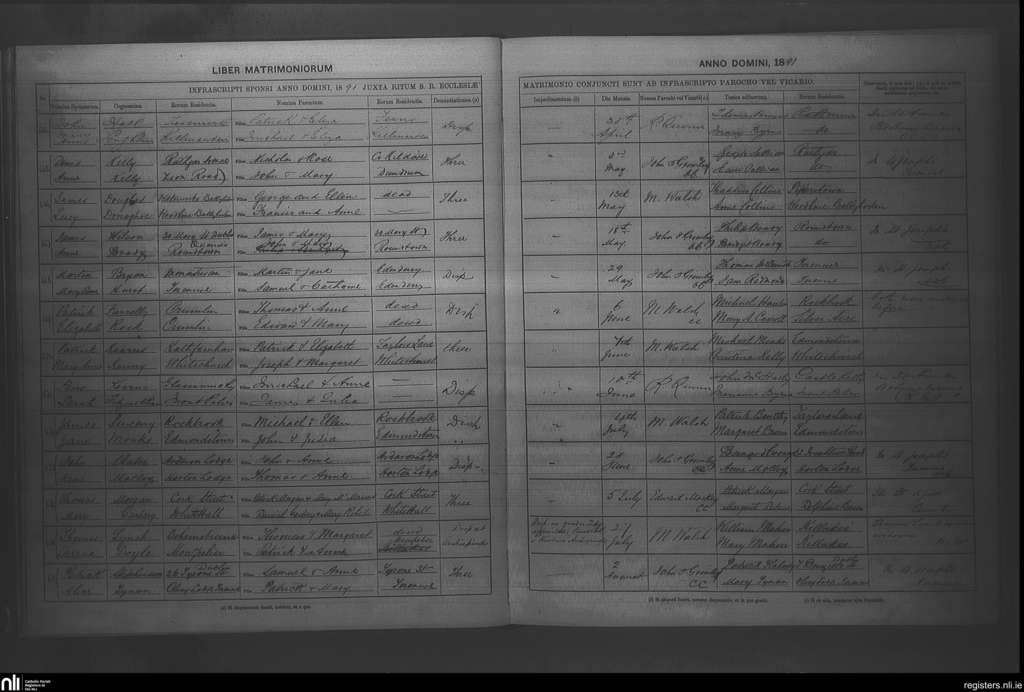 Rathfarnham; County of Dublin; Archdiocese of Dublin. Marriages, Apr. 1891 to Aug. 1891