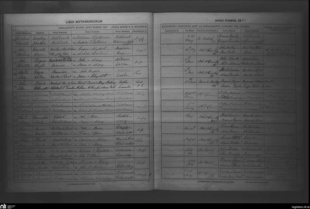 Rathfarnham; County of Dublin; Archdiocese of Dublin. Marriages, May 1893 to July 1893
