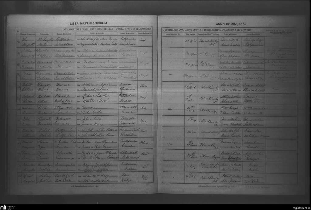 Rathfarnham; County of Dublin; Archdiocese of Dublin. Marriages, Apr. 1894 to July 1894